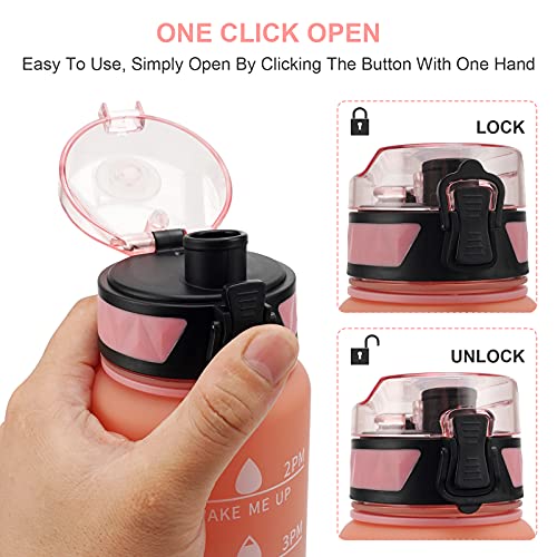 〖INDICATORE DEL TEMPO E PAROLE MOTIVAZIONALI〗Flacone da 32 once con citazione ispiratrice e indicatore del tempo, caratterizzato da una prospettiva traslucida e una scala di capacità che aiuta a misurare l'assunzione giornaliera di acqua in modo semplice e chiaro durante il giorno. È molto motivato per obiettivi di fitness e appassionati di sport all'aria aperta.