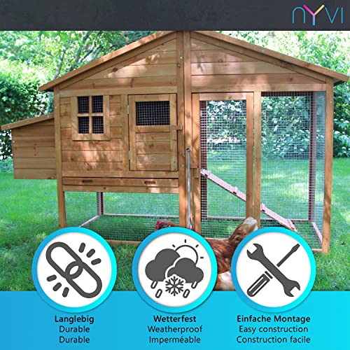NYVI Pollaio XXL Liese - resistente alle intemperie - Casetta pollaio con beccuccio e casetta - Casetta per piccoli animali all'aperto - 188 x 70 x 117 cm - Voliera per uccelli