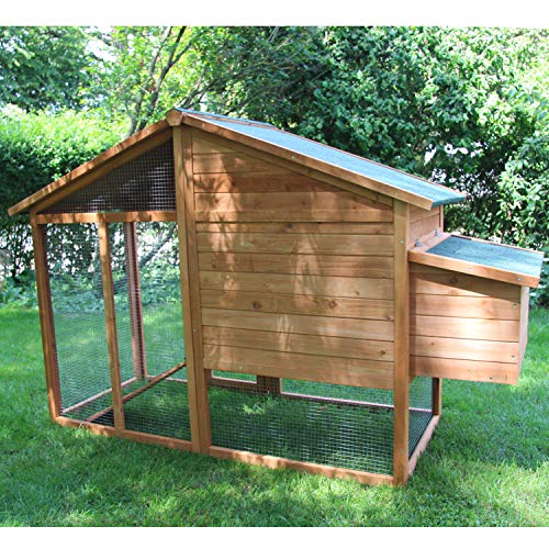 Il pollaio è realizzato in legno di conifera, il materiale è atossico e impregnato contro l'umidità. Il filo metallico è zincato e offre un'eccellente protezione contro i predatori come ad esempio martore e volpi