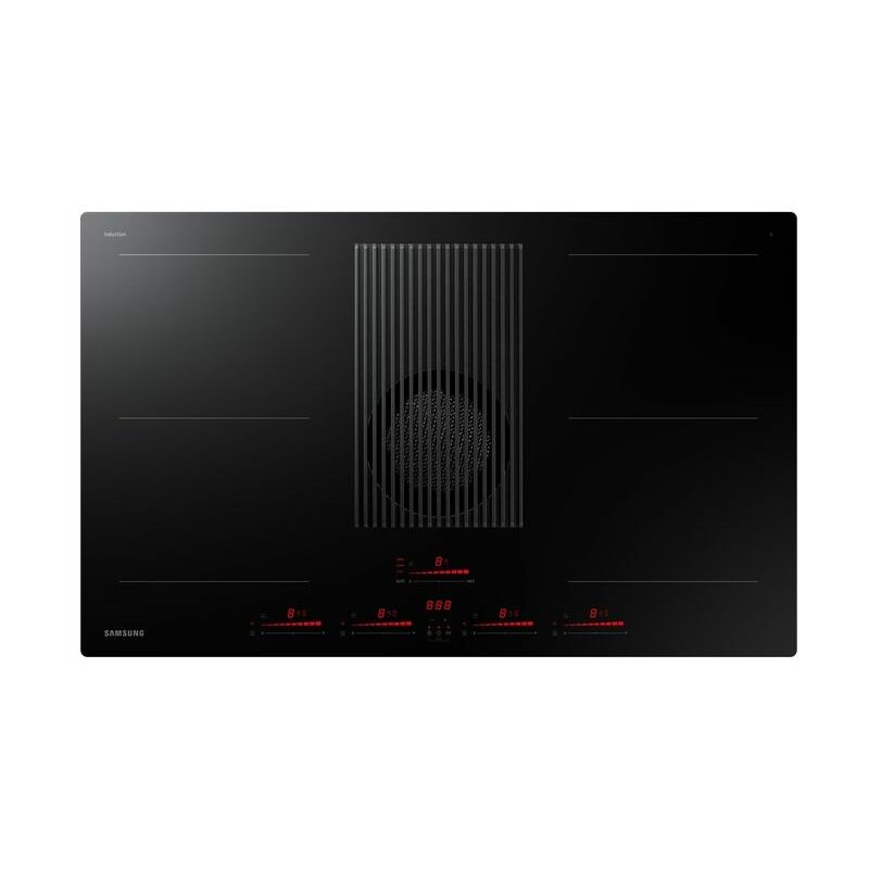 Samsung NZ84T9747UK/UR. Colore del prodotto: Nero, Posizionamento dell'apparecchio: Da incasso, Dimensione della larghezza del piano cottura: 83 cm. Bruciatore medio: 2100 W, Zona di cottura/fornello normale a piena potenza: 3700 W. Tipo di controllo: Barra di scorrimento, Touch, Posizione di controllo: Frontale superiore, Tipo di display: LED. Tipo di estrazione: Aspirante, Potenza massima di estrazione: 645 mⁿ/h, Emissione acustica: 72 dB. Potenza aggregata (elettrica): 7400 W, Scala di efficienza energetica: Da A+++ a D, Classe efficienza energetica: A