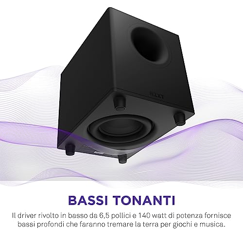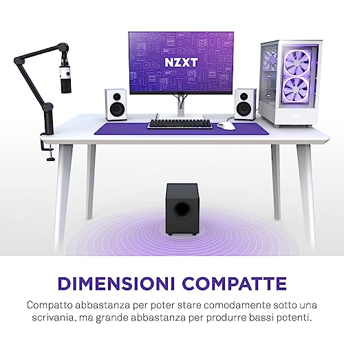 NZXT Relay Subwoofer da scrivania per gioco su PC - AP-SUB80-EU - 140 Watt - Bassi profondi e potenti - Driver rivolto in basso da 6,5 pollici - Manopole per controllo crossover e fase - Nero