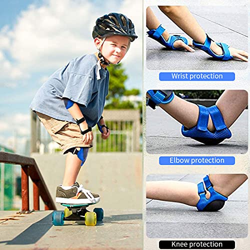 O-Kinee Protezione Kit per Bambini, 6 Pezzi Set di Ginocchiere per Bambini, Blu Sicurezza Gear Pad Gomitiera Polsiera Bambini, Protezioni Inlinea per Bambini per Pattini, Hoverboard, Scooter