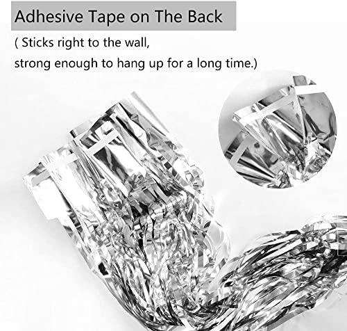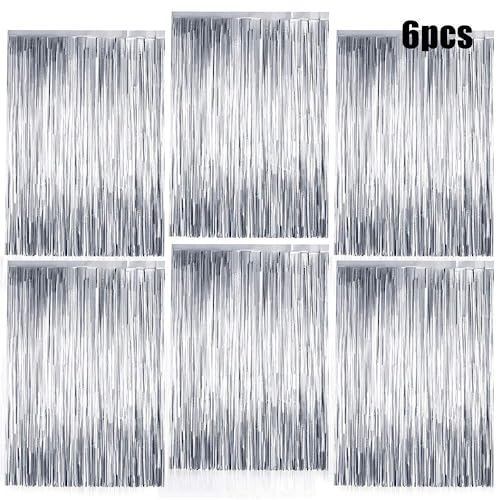 O-Kinee Tende Metalliche Tinsel Argento,Foil Tenda Compleanno Scintillante,6pz Tende Frangia sullo Sfondo,Shimmer Orpelli,Orpello Lamina Frange,Foil Tenda Metallici Feste Festoni(1m*2m)