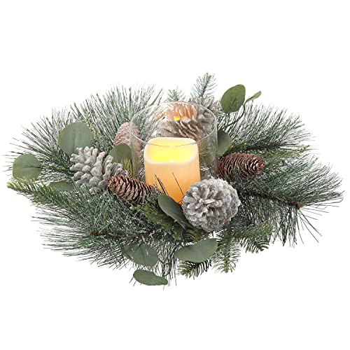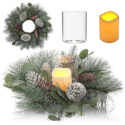 Oairse - Ghirlanda Natalizia dell'avvento con portacandele in Vetro, 46 cm, 1 Candela Mobile, Senza Fiamma, per Interni ed Esterni, Decorazione Natalizia