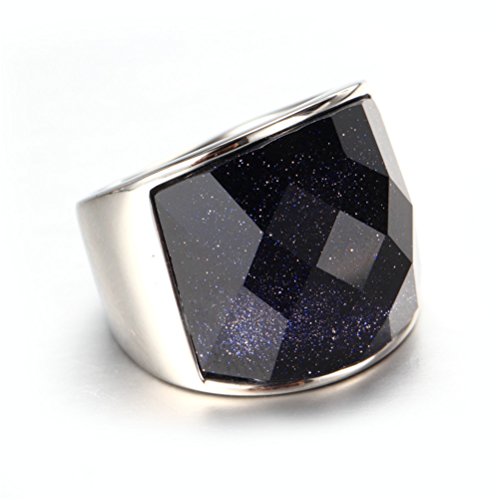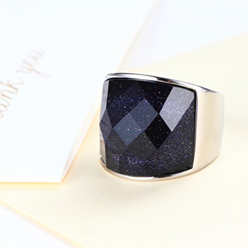 OAKKY Uomo Acciaio Inossidabile Blu Cielo Arenaria Taglio Diamante Pietra Preziosa Anello Misura 19