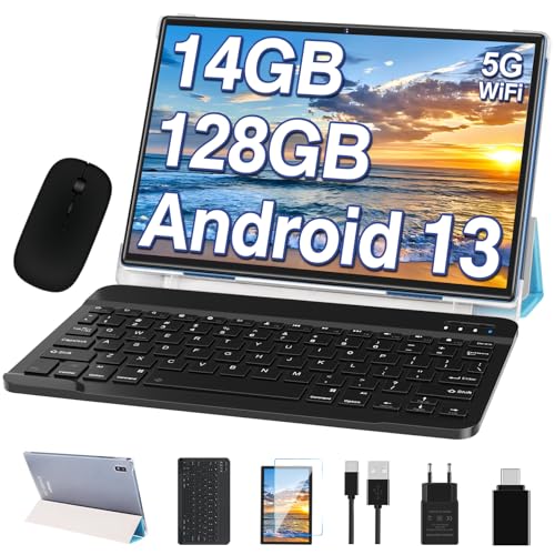 Oangcc 2024 Newest Android 13 Tablet 10 Pollici,14GB RAM+128GB ROM (TF 1TB),Octa-Core 2.0GHz, FHD Tablets con 5G+2.4G WiFi, 8000mAh | 5+8MP | Widgets | BT5.0 | GPS | Tablet con Mouse e Tastiera - Blu