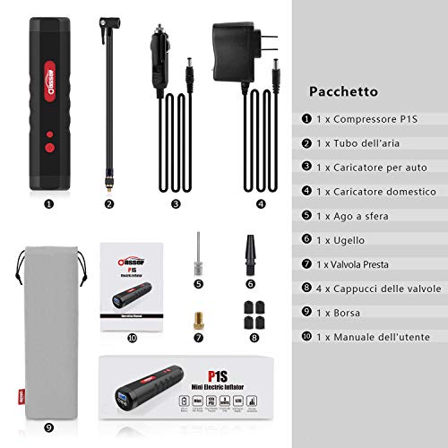 【Manometro digitale con schermo LCD】Il compressore portatile ti permette di misurare con precisione la pressione degli pneumatici. Il P1S ti fornisce 3 diverse unità di pressione (PSI, BAR, KG / CM2) tra cui poter scegliere e preimpostare la pressione degli pneumatici desiderata. Quando la pressione raggiunge il valore preimpostato, il compressore si spegnerà automaticamente per evitare un'eccessiva pressione