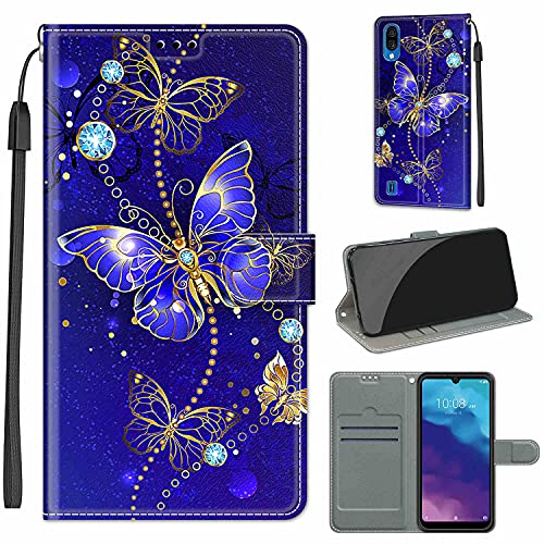 OATE Custodia per ZTE Blade A5 2020 Cover,Flip Wallet Case per ZTE Blade A5 2020,Custodie Protettive Magnetiche con Case Stand Cover Multifunzione Slots per ZTE Blade A5 2020,Farfalla Blu Dorata