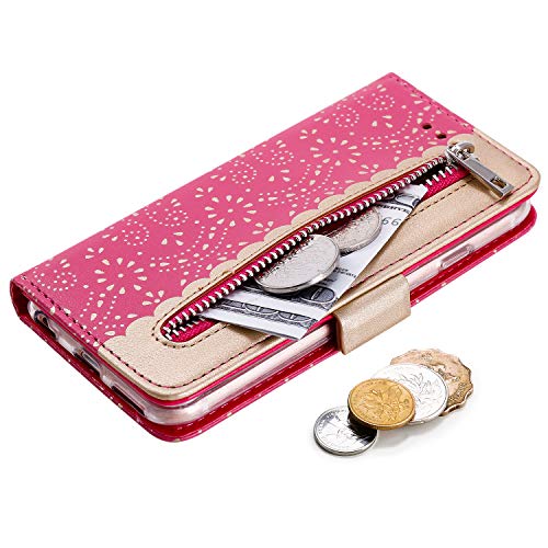 OATE Custodia iPhone 7 iPhone 8 Rosso Flip Premium Protettiva Portafoglio PU Pelle Case Cover Foglie Disegno Chiusura Magnetica Multifunzione con 2 Slot Carte e 1 Portamonete voi il portafogli