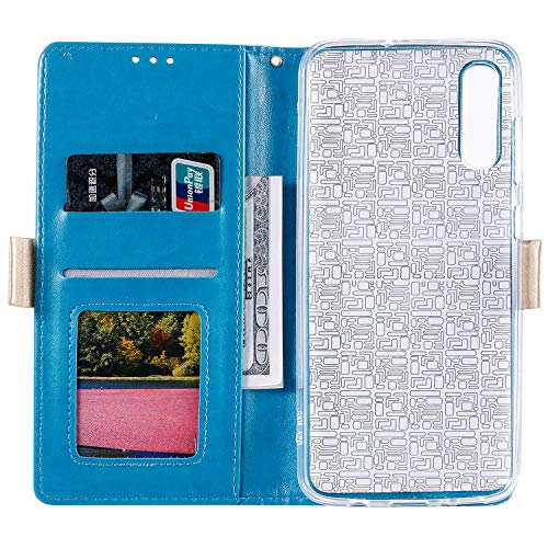 OATE Flip Case Custodia per Samsung A50 Libro Magnetico Book Style Donna in Pelle PU Cover Portafoglio Protettiva Slot Fiore di Pizzo PU Superficie Magnetica Stand Cerniera Cover per Galaxy A50,Blu