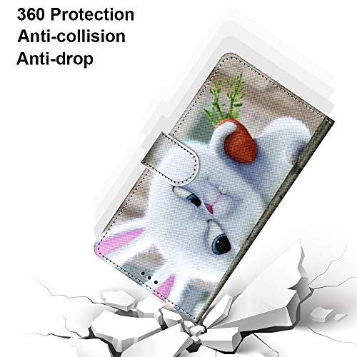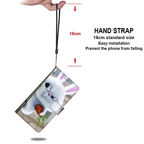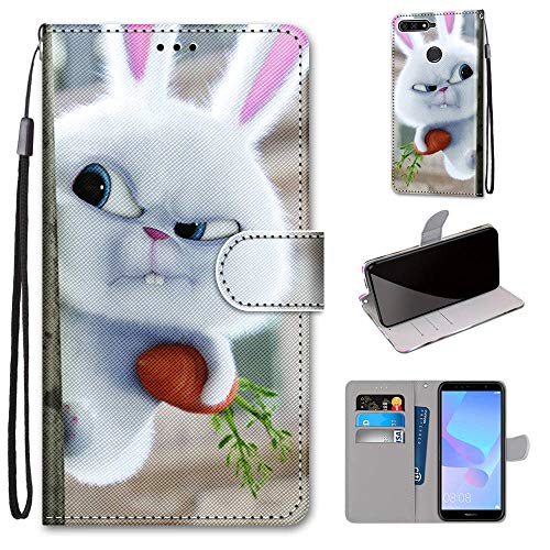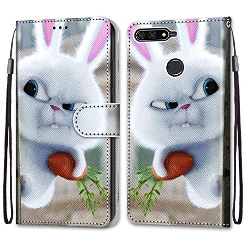 OATE Flip Wallet Custodia Portafoglio per Honor 7A Dipinto Flip Premium Protettiva Portafoglio PU Pelle Case Coniglio bianco carota Modella Cover Con 2 Slot Carte Portafogli per Huawei Y6 2018