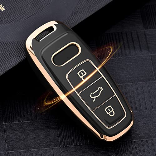 OATSBASF Custodia per chiavi, adatta per Audi, custodia per chiave auto, A6L A6 A7 A8 Q7 Q8 E-Tron 2019 2020 silicone TPU (bordo dorato nero)