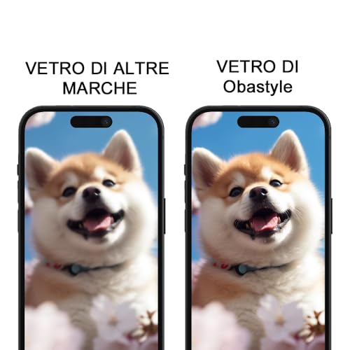 Obastyle Pellicola [2 Pezzi] Vetro Temperato per iPhone 15 (6.1 Pollice), Durezza 9H, Ultra Trasparente e Effetto Antimpronta, AntiGraffio e Infrangibile(ip15 6.1)