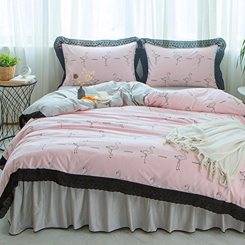 Obay City pizzo pizzo cotone lenzuola trapunta letto gonna sezione letto rivestimenti 4 set 1 copripiumino, 1 lenzuolo 2 federe, Queen