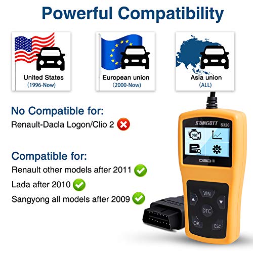 OBD2 Scanner, Auto Diagnostica Scanner OBD2 Lettore codice Errore Veicolo con Lettura e cancellazione Codici Errore Supporto Controllo automobilistico Errore Spia Motore