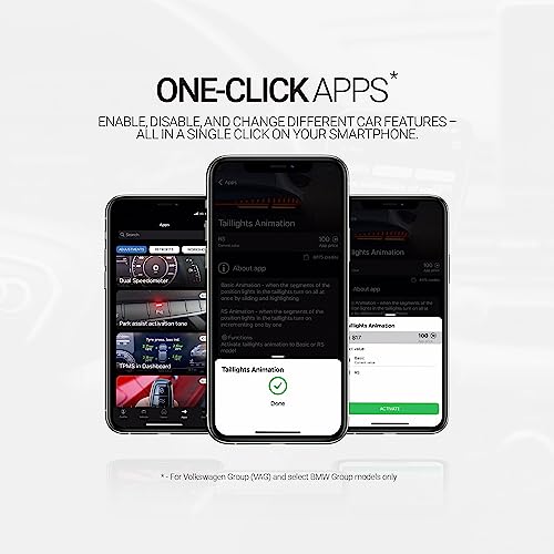 Con l'aiuto delle nostre app One-Click sviluppate, puoi abilitare o disabilitare determinate funzioni, attivare mod retrofit come sensori di parcheggio o ripristinare gli intervalli di manutenzione dopo aver eseguito la manutenzione di base sul tuo veicolo senza strumenti automobilistici