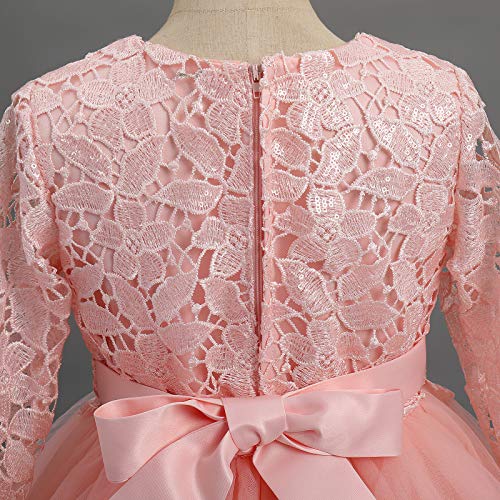 OBEEEII Bambina Vestito Principessa in Pizzo 3/4 Manica Tulle con Paillettes Abbigliamento Bambine Invernale Eleganti Abito Principessa de Festa Cerimonia Sposa Sera per Ragazza Rosa 13-14 Anni