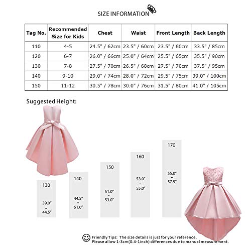 ✤ ABITO ELEGANTE: Abito da festa formale in tulle per ragazze dai 4 ai 12 anni. A-line, O collo, senza maniche, design Hi-Lo asimmetrico, impreziosito in tulle, decorato con patchwork di ricami floreali, perline e bowknot. Questo fantastico vestito ti aiuterà a diventare il punto focale della festa.