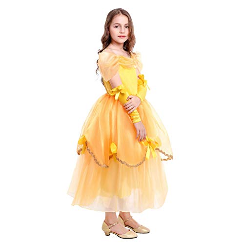 OBEEII Carneval Costume La Bella e La Bestia Abito Principessa Belle Vestito da Ragazze Festa Halloween Natale Cerimonia Vestito Giallo 6-7 Anni