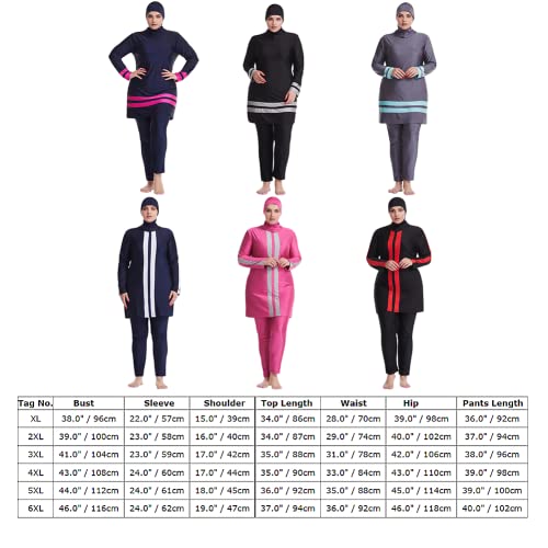 OBEEII Costume da Bagno Musulmano Donne Ragazze Costume da Bagno Islamico Musulmano con Cuffia da Bagno Costumi da Bagno Modest Beachwear Burkini per Le Donne Tankini Grigio 3XL