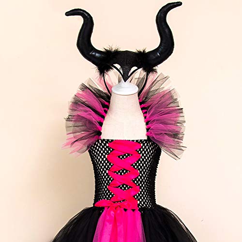 OBEEII Costume da maleficent per bambina, nero, per feste, cosplay, Natale, cerimonia, Halloween, spettacoli di palcoscenico, 0-12 anni, Rosa acceso., 8-9 Anni