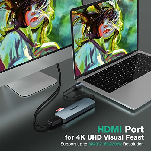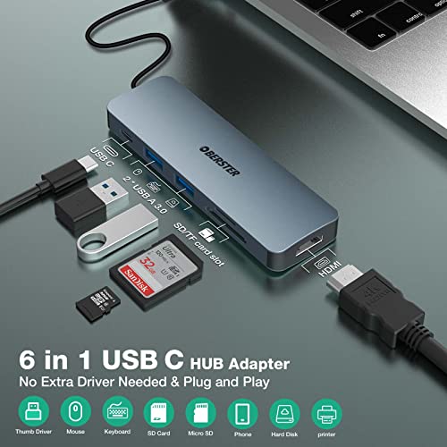 OBERSTER Hub USB C, 6 in 1 Multiport USB C Dock con uscita HDMI 4K, 2 USB 3.0, 100W PD, SD/TF Card Playback USB C Adapter Compatibile con MacBook Pro/Air/Surface Pro 8 e altri dispositivi di tipo C
