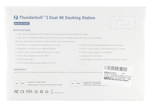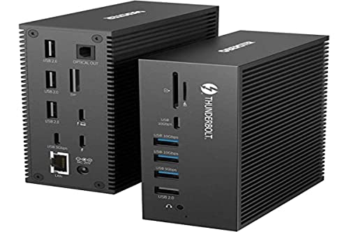 【Trasmissione ad altissima velocità 40 Gbps】-- La velocità teorica dell'interfaccia Thunderbolt 3 è di 40 Gbps, che può collegare più altri dispositivi Lightning in modalità daisy-chain. Le porte USB-C 3.1 Gen 2 e 2 USB-A 3.1 Gen 2 possono anche trasmettere fino a 10 Gbps. Dotato di quattro porte USB-A per tastiera e mouse wireless. Perfetto per le tue esigenze di trasferimento dati. La porta Ethernet supporta una velocità di rete di 1000 Mbit/s.