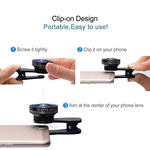 【Compatibile con la maggior parte dei dispositivi】 L'obiettivo con profilo basso e clip sottile è adatto per iPhone 7/6/6s/6s Plus/5s, Samsung Galaxy S6 S7 Edge Plus, Galaxy S7, S6, LG G5 V10 V 20, iPad o altri telefoni e tablet Android. (Non è compatibile con iPhone 7 Plus.)