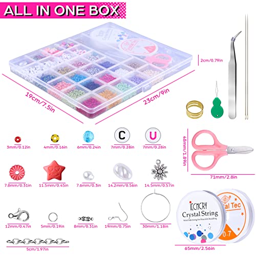 OBOVO 7600Pezzi Perline per Braccialetti, Bigiotteria fai da te con Vetro Colorate e Lettere per Collane, Set Gioielli per Adulti Bambini