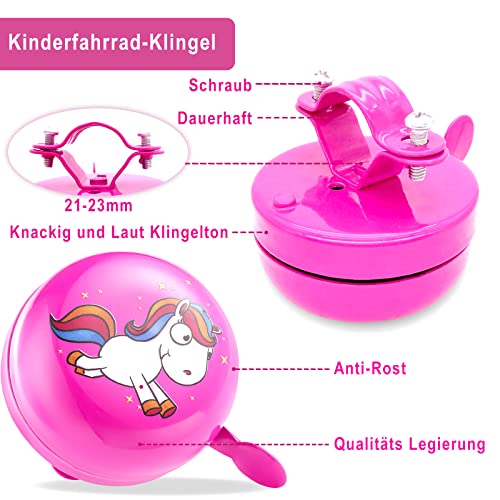 Obqo Campanello per bicicletta per bambini, con unicorno, per bicicletta, per ragazze, regalo di compleanno, Natale, per la festa dei bambini, accessorio per bicicletta (rosso rosa)