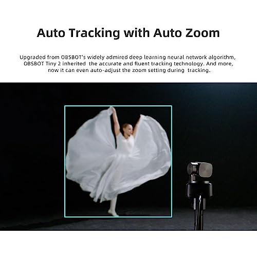 OBSBOT Tiny 2 Telecamera PTZ 4K alimentata AI, 1/1,5", CMOS 4X, messa a fuoco più veloce, USB 3.0, 10 volte più veloce, controllo vocale, con Tiny Smart Remote 2
