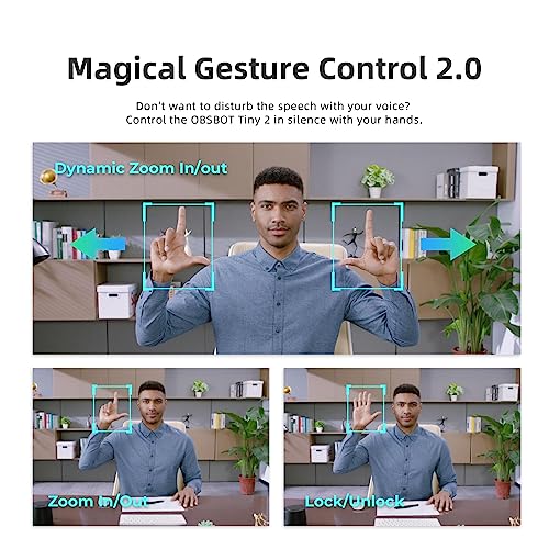 Tracciamento AI con zoom automatico: OBSBOT Tiny 2 è stato sviluppato dall'algoritmo di rete di apprendimento profondo di OBSBOT e adotta la tecnologia di tracciamento accurata e fluida. Inoltre, ora l'impostazione dello zoom può anche essere regolata automaticamente durante il monitoraggio.