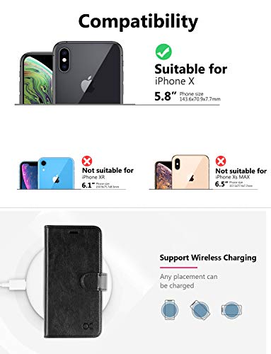 OCASE Cover iPhone X, Custodia iPhone XS Interno TPU Antiurto Portafoglio, Supporto Stand, Carta Fessura, Custodia di Pelle Case Flip per iPhone X/XS Garanzia a Vita - Nero