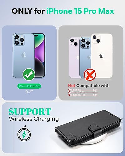 OCASE Custodia iPhone 15 Pro Max, Cover iPhone 15 Pro Max Interno TPU Antiurto Portafoglio [RFID Blocking] [Carta Fessura] [Supporto Stand] Custodie in Pelle per iPhone 15 Pro Max (6,7 Pollici) - Nero