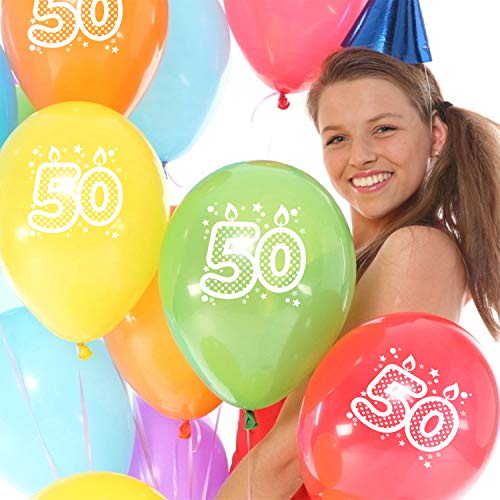Palloncini Compleanno Confezione 20pz in lattice. I palloncini colorati stampa 50 anni colore assortiti pastello palloncini compleanno che si possono usare e completare i kit festa di festa di compleanno come addobbi e decorazioni o per festeggiare il compleanno, si possono gonfiare con bombola elio o ad aria, palloncini festa colori pastello assortiti. Soffia le tue candeline compleanno con i nostri palloncini 50 anni