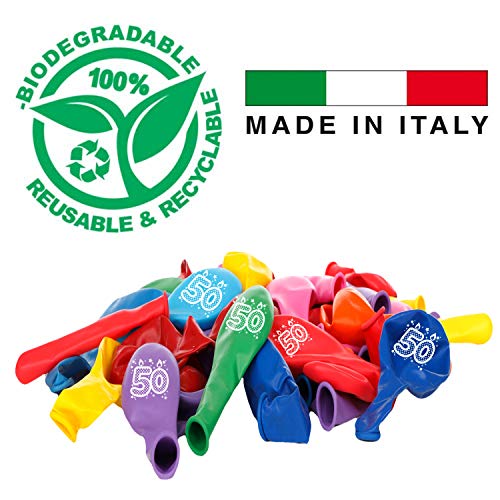 Ocballoons 20 Palloncini Compleanno Biodegradabili Colorati in Lattice Kit Festa Made in Italy Addobbi Decorazioni Gonfiabili con Bombola Elio Buon Compleanno (50 anni)