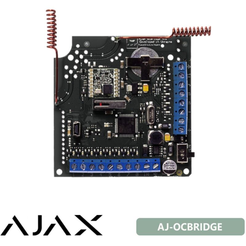 Ajax modulo integrazione con sistemi cablati e ibridi di terze parti Specifiche tecniche Classificazione Ricevitore di rilevatori wireless Installazione Interni Compatibilità Sistemi di sicurezza cablati e ibridi Numero di aree di sicurezza 8 Numero di aree di servizio 4 Loop NA/NC, EOL, 2EOL Numero massimo di rilevatori 99 Dispositivi supportati MotionProtect MotionProtect Plus CombiProtect DoorProtect FireProtect FireProtect Plus LeaksProtect SpaceControl GlassProtect Tempo di ricezione del segnale di allarme 0.15 s Alimentazione Terminali +/messa a terra Tensione di alimentazione 8 - 14 V CC miniUSB: 5 V (solo per installazione) Tecnologia radio Jeweller Raggio di comunicazione con i rilevatori: fino a 2000 m in spazi aperti Comunicazione bidirezionale con i rilevatori Frequenze di funzionamento: 868,0 - 868,6 MHz Potenza di uscita RF autoregolante: fino a 25 mW Crittografia a blocchi basata sull'algoritmo AES Periodo di polling del dispositivo: 12 - 300 s Possibilità di