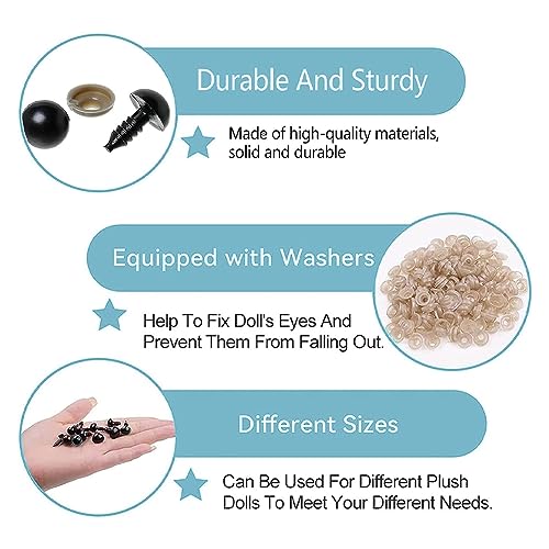 Occhi E Nasi di Sicurezza, Occhi di Bambola Plastici, 135 pezzi Occhi di sicurezza per animali all'uncinetto, Occhi in Plastica Nera per Bambole,Peluche e Orsacchiotti, Fai da Te
