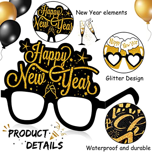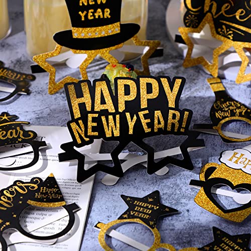 24 Occhiali di Carta con Happy New Year per Vigilia di Capodanno 2024 Occhiali da Vista Divertenti Decorativi con Glitter per Bambini Decorazioni per Photo Prop Foto Selfie Bomboniere Festa