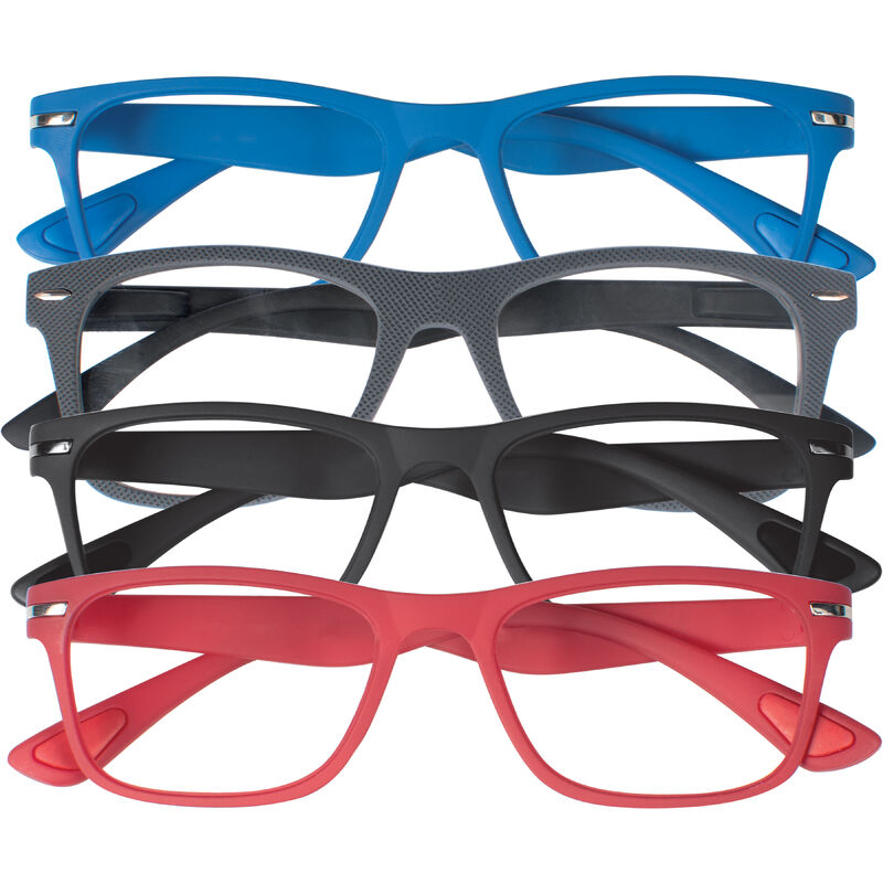 Modello OKLAOMA montatura in leggero materiale organico iniettato, lenti asferiche ultrasottili ed infrangibili. Astine flessibili con meccanismo a molla. Completi di astuccio in ecopelle. Colori assortiti. Diottrie 3,5