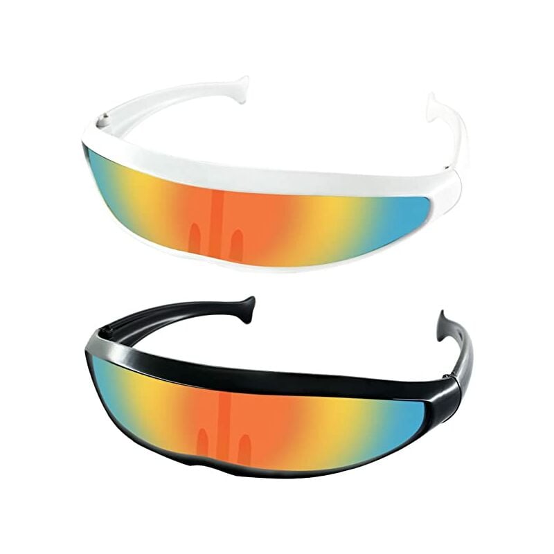 Due occhiali futuristici - Riceverai due paia di occhiali futuristici in diversi colori, una montatura bianca con lenti arcobaleno e una montatura nera con lenti arcobaleno. 【Materiale di alta qualità 】Gli occhiali da sole futuristici sono realizzati in materiale PVC di alta qualità e lenti colorate, che sono molto resistenti e durevoli, non si danneggiano facilmente e, allo stesso tempo, sono molto leggeri e non appesantiscono il naso. 【Dimensioni universali】 Questi occhiali alieni misurano circa 11,5 x 15,5 x 4,2 cm, si adattano alla maggior parte degli adulti e dei bambini. Bambini, si prega di acquistare con fiducia. 【Ampiamente usato】 Questi occhiali divertenti sono adatti a tutte le occasioni, come eventi estivi in spiaggia, festival musicali, feste di carnevale, Halloween ecc Può anche essere usato come supporto fotografico, con costumi, ecc., Molto pratico. 【Occhiali da sole fantastici】 Indossare questi occhiali da sole colorati non solo può farti sembrare cool, ma anche
