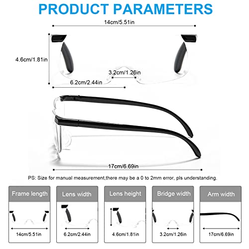 ● Lenti in vetro leggere e resistenti: materiale di alta qualità, lascia che il vetro dell'occhio sia solo 1,5 once, nessun peso per il naso. Le lenti acriliche trasparenti e resistenti offrono un'ottima visione 1.6X/1.8X ingrandisci e previene i graffi