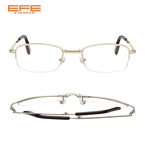 EFE Occhiali da lettura pieghevoli Uomo Donna Confezione da 2 per la lettura Trasparenti con struttura in metallo Stile rettangolo Leggero Comodo 3.0