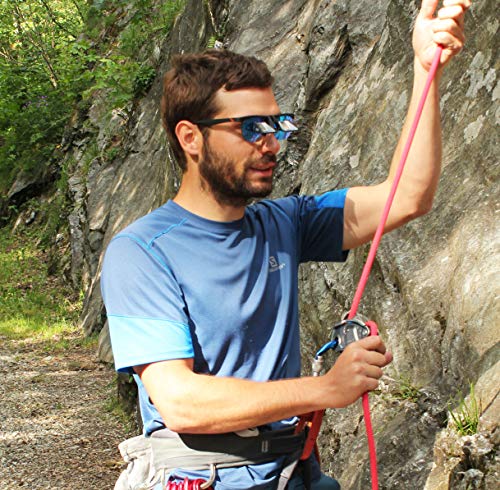 Questi occhiali belay hanno prismi trapezoidali per una visione panoramica sull'arrampicatore