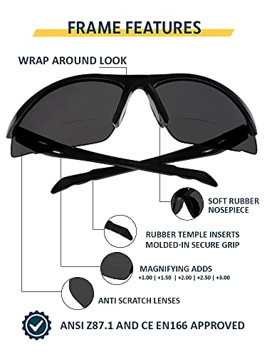Occhiali di sicurezza con lenti bifocali con ingrandimento da lettura SB-9000, colore: grigio fumo +3.00