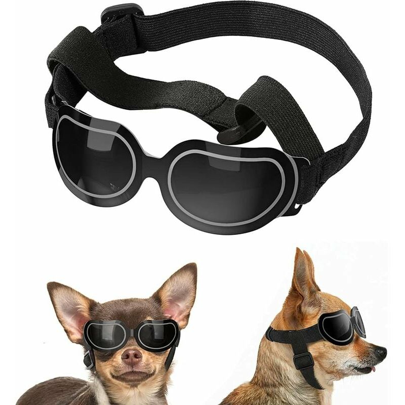 Materiale - : la lente è realizzata in resina AC e la montatura degli occhiali è realizzata in EVA+PC. È resistente, leggero e confortevole. È adatto a cani di piccola taglia come oggetti di scena fotografici o spettacoli e spettacoli da indossare ogni giorno. .Fornisce la massima protezione UV/vento/acqua/detriti per gli occhi., [Fascia elastica]: la fascia elastica regolabile può adattarsi alla forma del tuo cane e il design del sottogola ti fa non doverti più preoccupare di cadere facilmente. La testa e il mento hanno un cinturino elastico preciso, facile da indossare. [Ampia portata]: gli occhiali per cani sono adatti per l'uso quotidiano, per scattare foto, feste, matrimoni e vacanze. Ogni paio di occhiali da sole è dotato di lenti riflettenti per rendere il tuo cane più chic e affascinante. [Internal Sponge Pad]: c'è un riempimento in spugna intorno all'obiettivo. La spugna ad alta densità ha un'eccellente permeabilità all'aria, che può alleviare perfettamente l'affaticamento