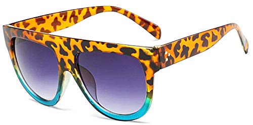 Occhiali da sole Femmina - Donna - Grandi - Oversize - Femminile - Ragazza - Diva - Retro - Vintage - Montatura blu e leopardata - Moda - Lente grigia sfumata - Idea regalo originale
