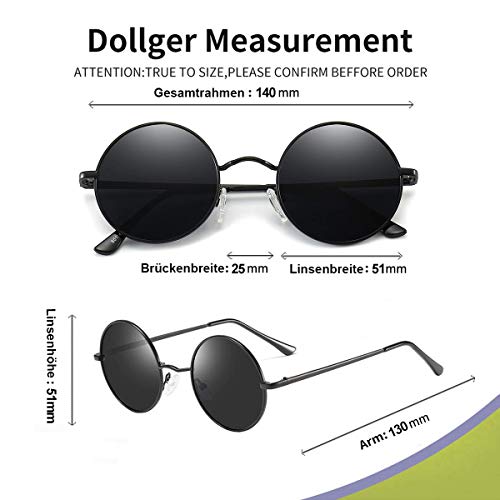 Occhiali da Sole Retro Uomo Donna Lennon Rotondi Polarizzati Metal Frame Protezione UV Nero