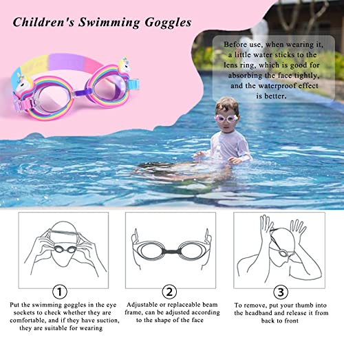 Occhialini da Nuoto per Bambini Occhiali da Piscina Trasparenti Regolabili Occhialini da Nuoto dei Cartoni Animati Occhialini da Nuoto con Lenti Anti-Appannamento e UV Protezione Stile Unicorno