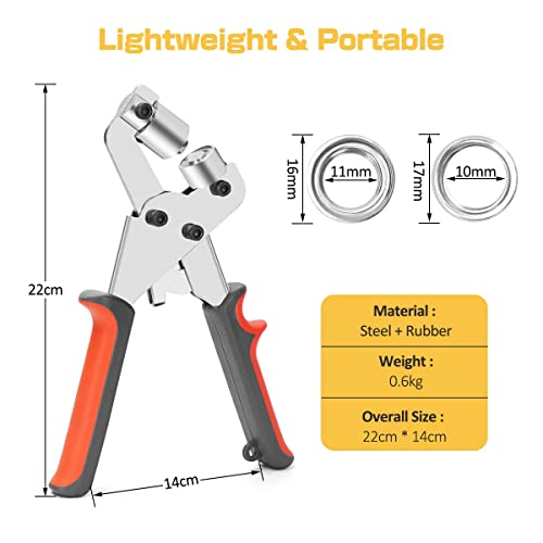 【Inizia a Lavorare in Qualsiasi Momento】-- Il set di pinze per occhielli è dotato di occhielli 500x e rondelle per occhielli. La dimensione è di soli 22 cm x 14 cm, facile da trasportare, quindi puoi iniziare a perforare in qualsiasi momento.